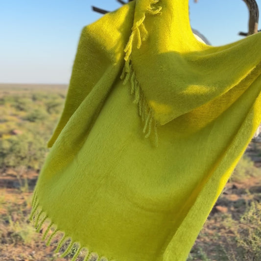 Woven to showcase the diamond quality colours of mohair, these tassle blankets honour the vibrant colours of the Karoo.
