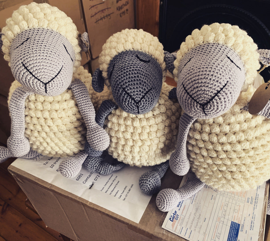 The original Karoo Farm Box Darling. Meet Japie die Skapie. He is crochetted by hand from the finest South African wool, in the heart of the Karoo.