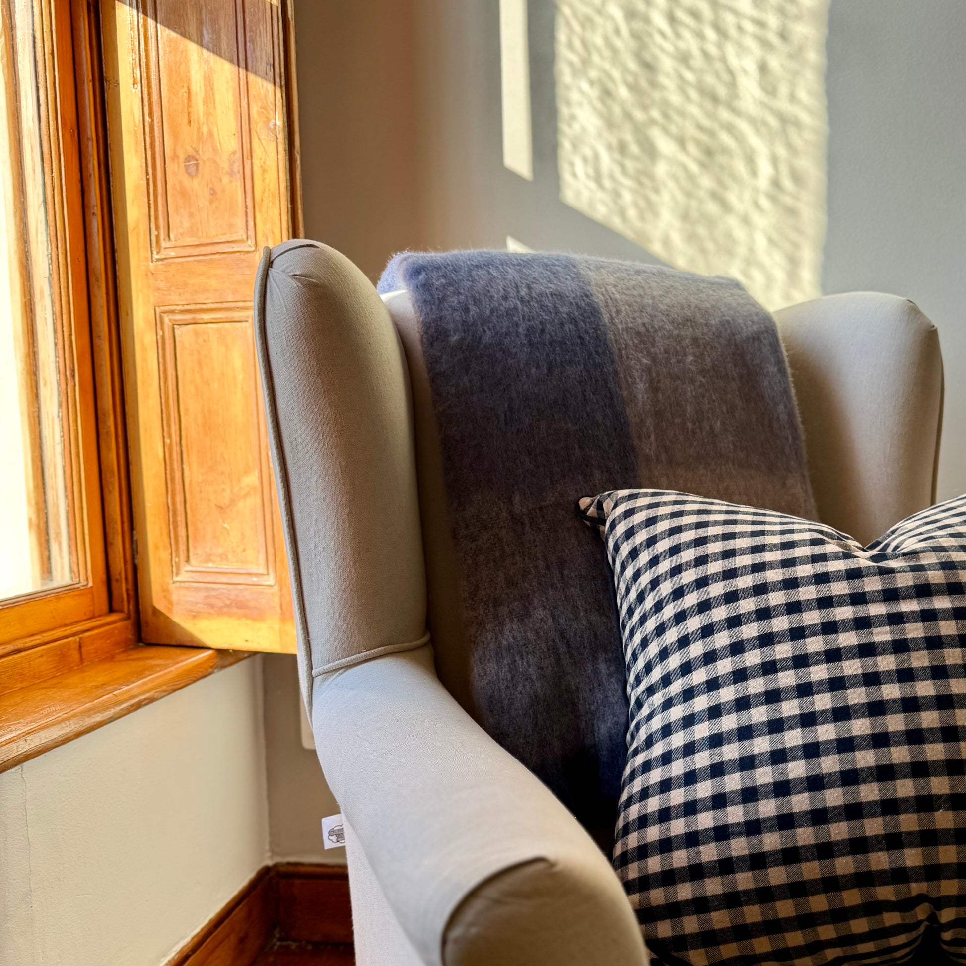 Our custom design KAROOMADE mohair blanket is inspired by the Roggeveld Karoo landscape, known for its vast open plains, rugged beauty, and the towering Roggeveld Mountains.